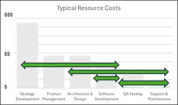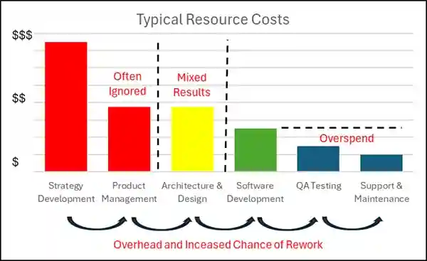 While hiring a single software developer might seem like a viable option, it often results in an individual being overwhelmed with multiple responsibilities. You can’t expect a programmer to excel at architecture, market research, or understanding your customer’s needs. Even if you find a more experienced person, the risk is that this resource gets stuck doing low-value work like testing, as the workload still needs to be completed. Either scenario creates waste in your development process.